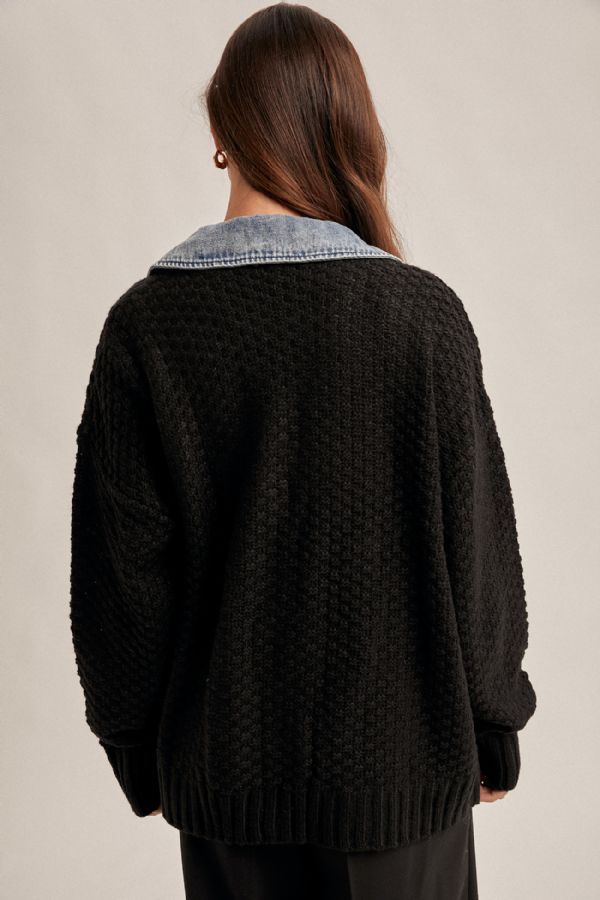 Meet your new throw-on-and-go layer. This cardigan combines soft sweater knit with a cool denim-contrast detail that makes it feel a little more special than your usual cozy layer. The front pockets are perfect for keeping your hands warm or stashing your phone on the go.